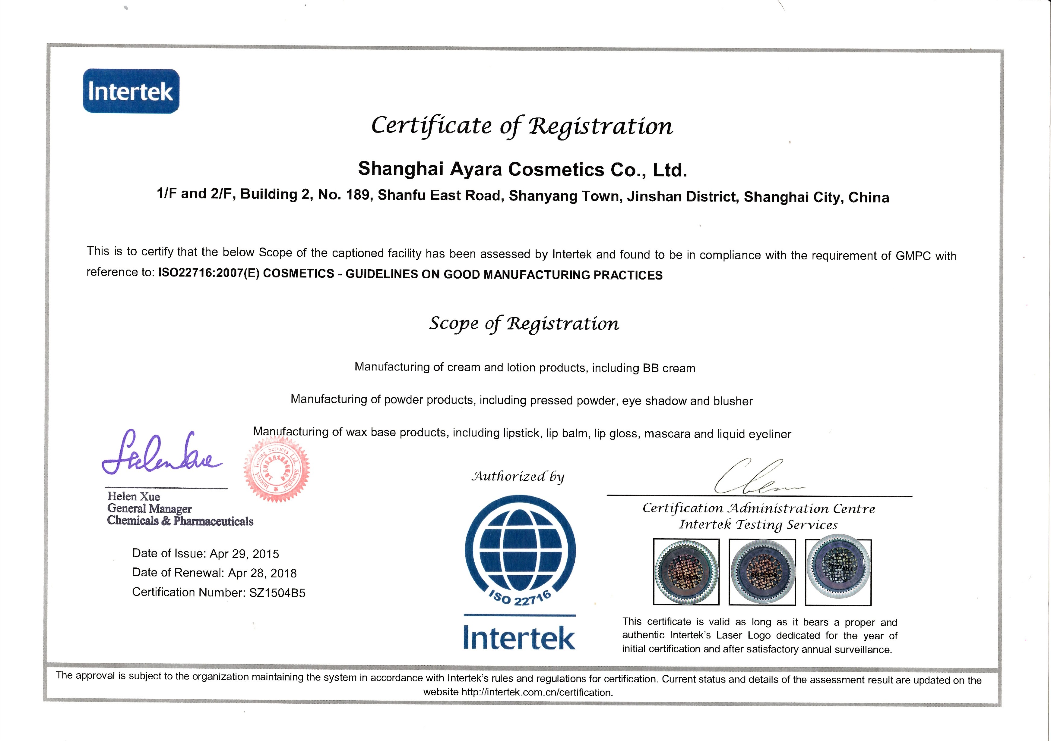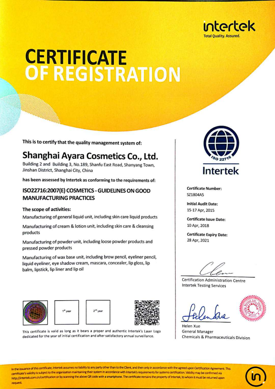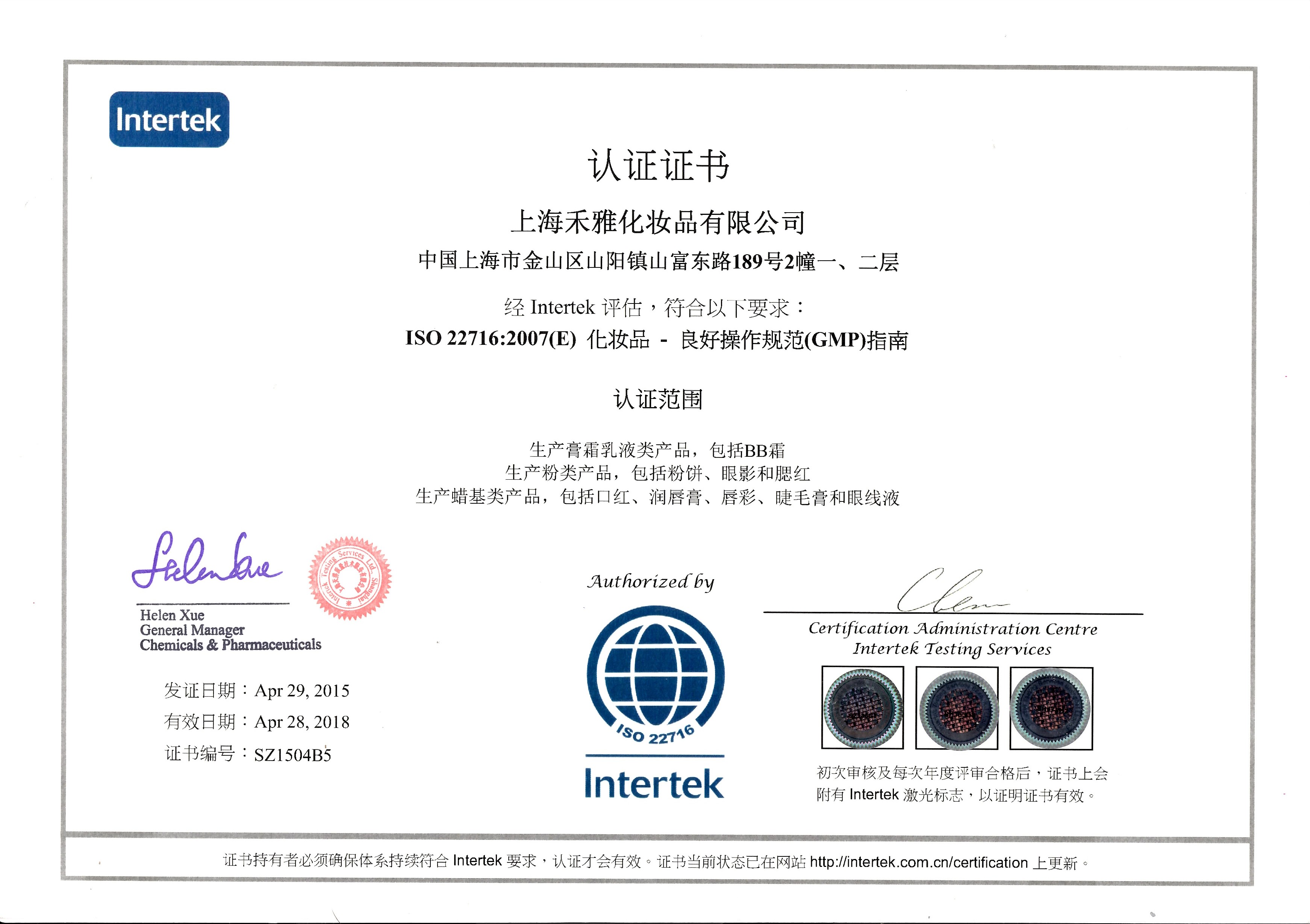 質(zhì)量體系證書(shū)GMPC英文版