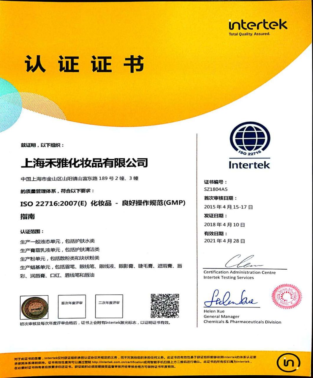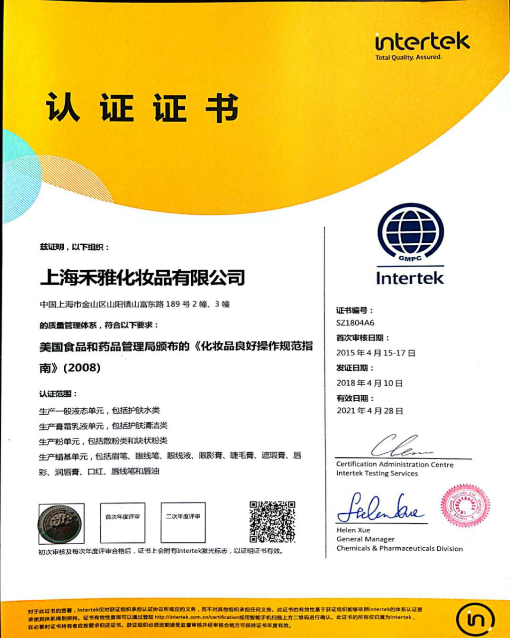 質(zhì)量體系證書(shū)GMPC中文版